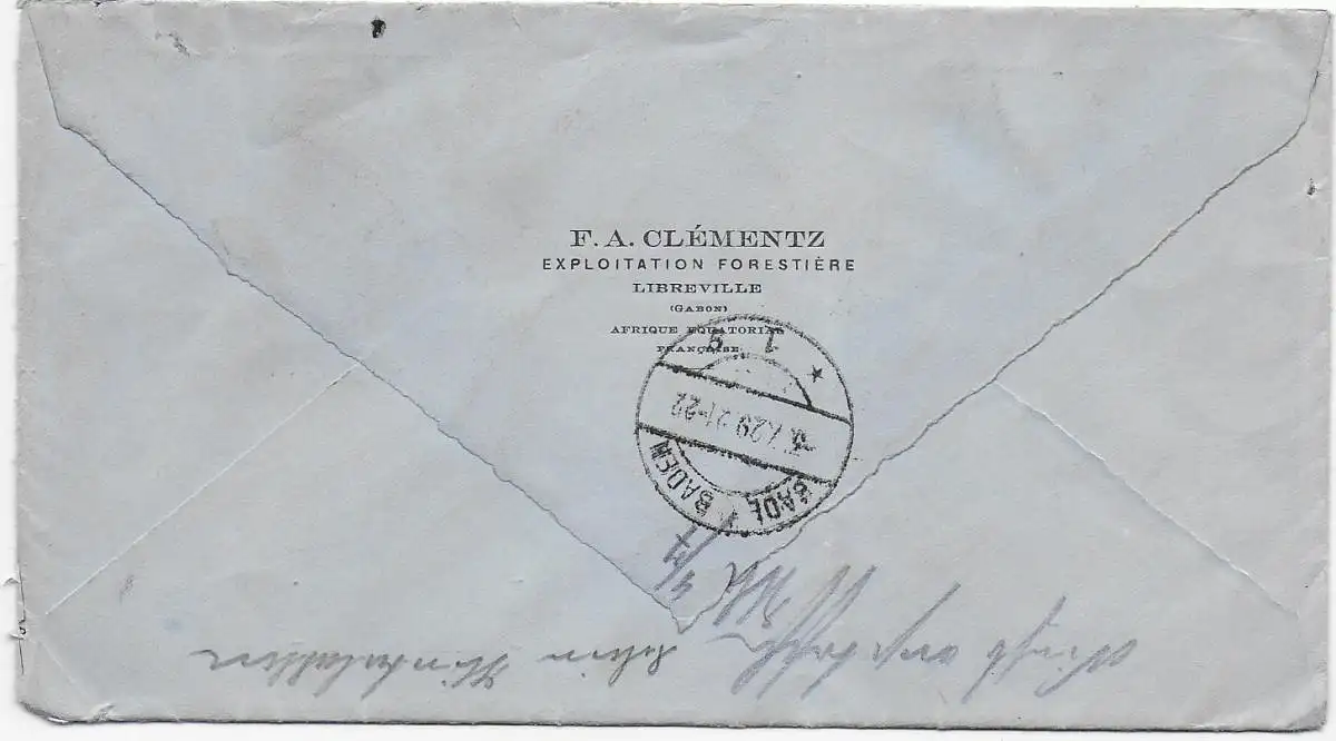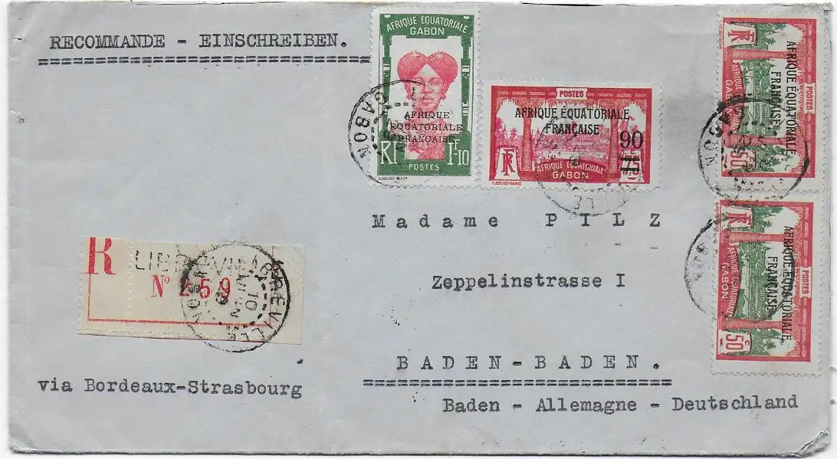 Franz. Äquatorial Afrika, Gabon, Einschreiben nach Baden-Baden, 1929