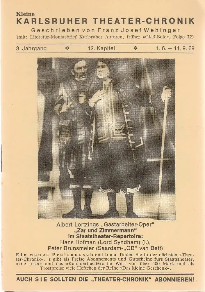 Franz Josef Wehinger: Kleine Karlsruher Theater-Chronik 3. Jahrgang 12. Kapitel 1. 6. - 11. 9. 1969.