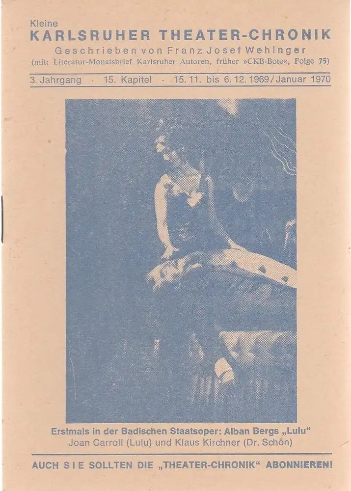 Titel: Kleine Karlsruher Theater-Chronik 3. Jahrgang 15. Kapitel 15. 11. bis 6. 12. 1969 Januar 1970