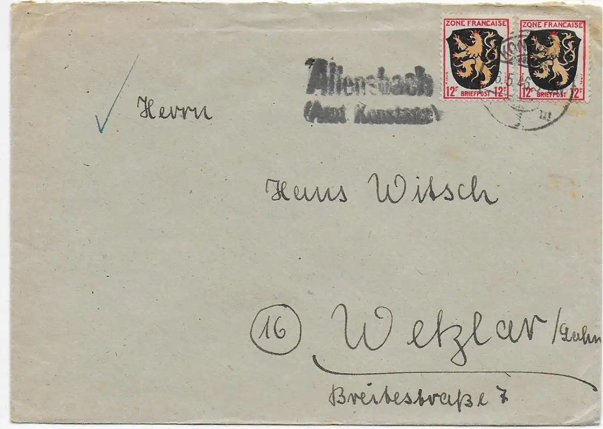 Franz. Zone 1945: Allensbach/Konstanz nach Wetzlar