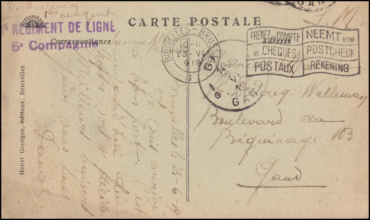 Französische Feldpost REGIMENT DE LIGNE auf AK BRÜSSEL Gericht 23.6.1919