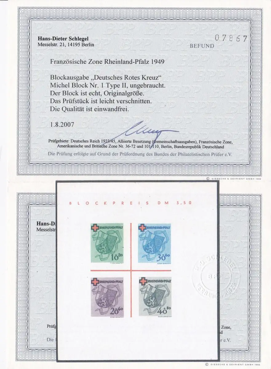 Französische Zone: MiNr. Block Nr. 1, Type II, ungebraucht, BPP Befund