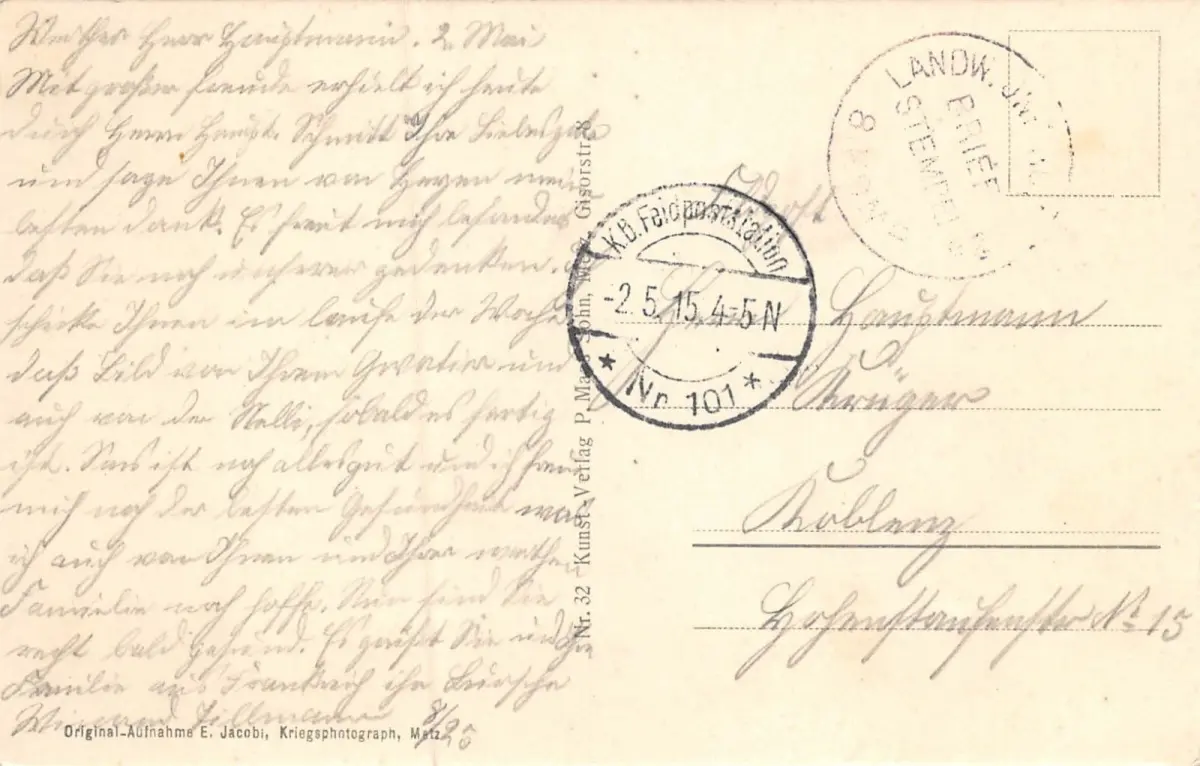 Rückseite: gelaufen 1915