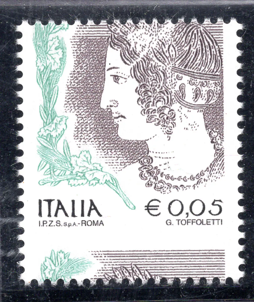 Frau in der Kunst Euro 0,05 versetzte Verzahnung ** - Frau in der Kunst Euro 0,05 Nr. 2724 schönes Exemplar mit stark vertikal verschobener Verzahnung - Ungewöhnlich Cod. 872/19