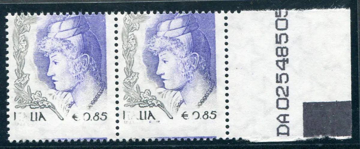 Frau in der Kunst Euro 0,85 Sorte Ilia Vollgummi - MHN - - Frau in der Kunst Euro 0,85 Nr. 2729 horizontales Paar mit unvollständigem Schwarzdruck, so dass Ilia statt Italien gelesen wird - auffälliger Cod. 865/14