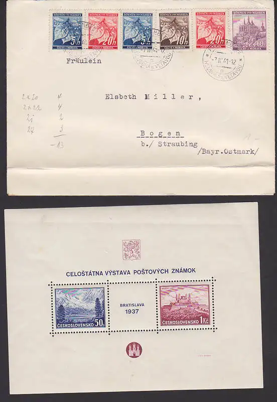 Frauenberg b. Budweis Ausgabe Böhmen u. Mähren nach Bogen bei Straubing, Bl. Bratislava Gummifehler