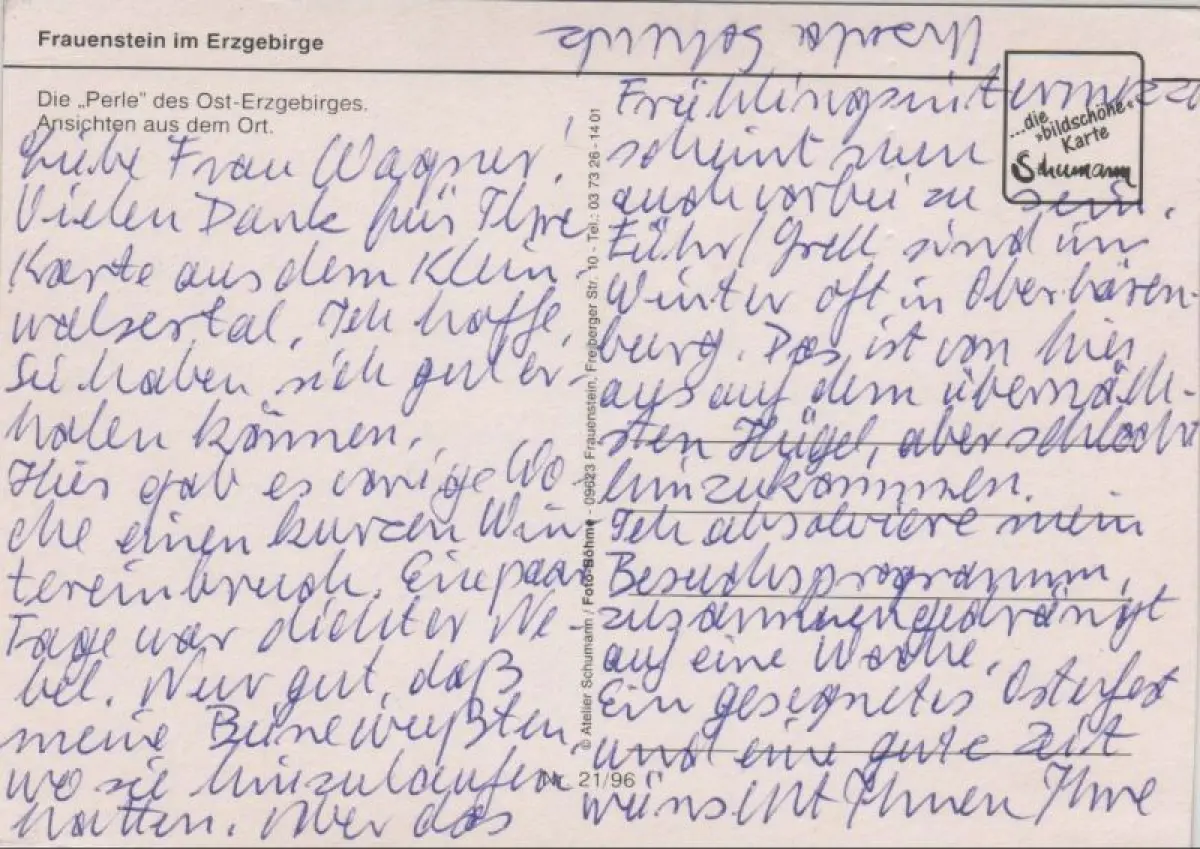 Postleitzahl:09623 (neu) / O 9202 (alt)