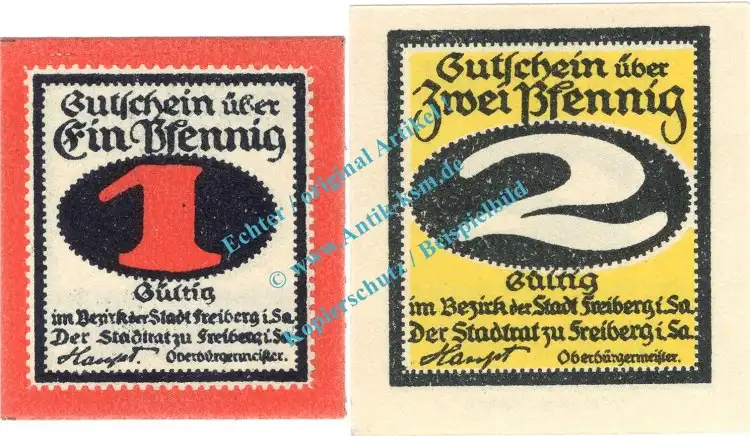 Freiberg , Notgeld Set mit 2 Scheinen in unc. Tieste 1950.20.30-31 , Sachsen o.D. Verkehrsausgabe
