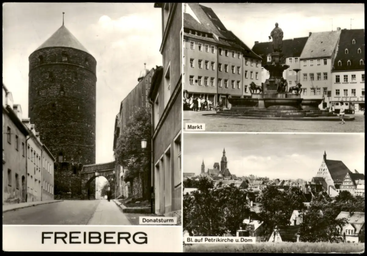 Freiberg (Sachsen) DDR Mehrbild-AK mit Donatsturm, Petrikirche und Markt 1978