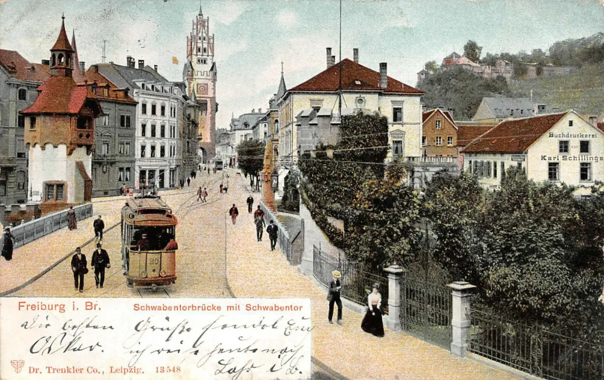 Freiburg Br. Strassenbahn am Schwabentorbrücke Baden-Württemberg AK 1904
