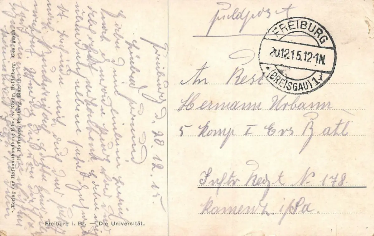 Freiburg Breisgau Universität Baden-Württemberg Postkarte AK 1915