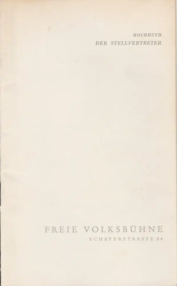 Freie Volksbühne Schaperstrasse 24, Hermann Kleinselbeck: Programmheft Rolf Hochhuth: DER STELLVERTRETER Spielzeit 1962 / 63 Heft 2.