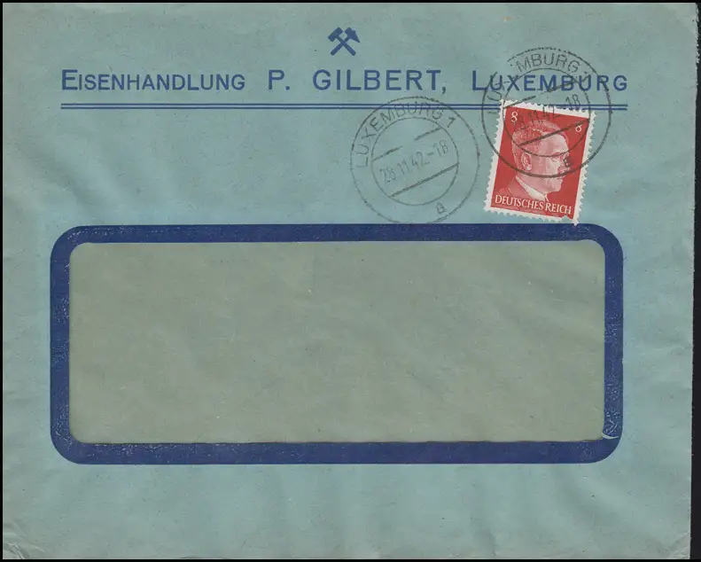 Freimarke Hitler 8 Pf. Fensterbrief Eisenhandlung Gilbert LUXEMBURG 28.11.42
