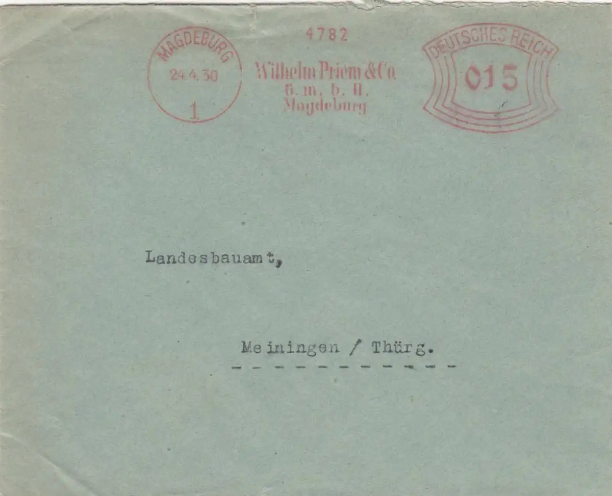 Freistempel 1930: Magdeburg Wilhelm Priem nach Meiningen