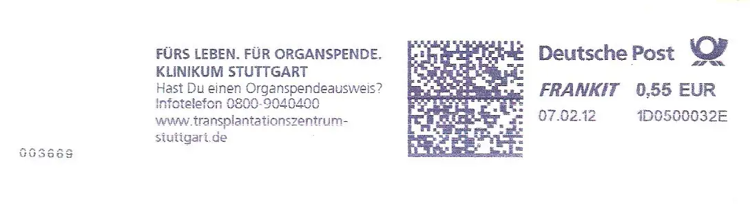 Freistempel 1D0500032E Stuttgart - Klinikum Stuttgart - Fürs Leben, Für Organspende. - Hast Du einen Organspendeausweis? (#1664)