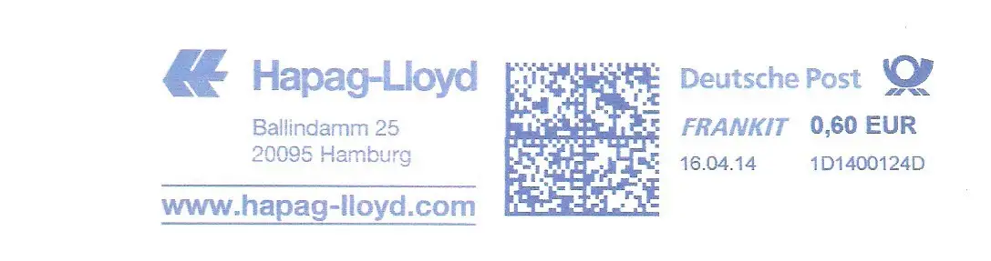Freistempel 1D1400124D Hamburg - Hapag-Lloyd www. hapag-lloyd.com (#3049)