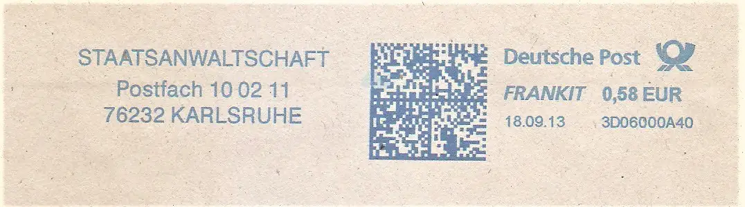 Freistempel 3D06000A40 Karlsruhe - Staatsanwaltschaft Karlsruhe (#2687)