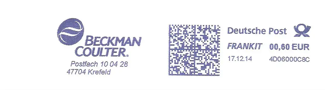 Freistempel 4D06000C8C Krefeld - BECKMAN COULTER (#2289)