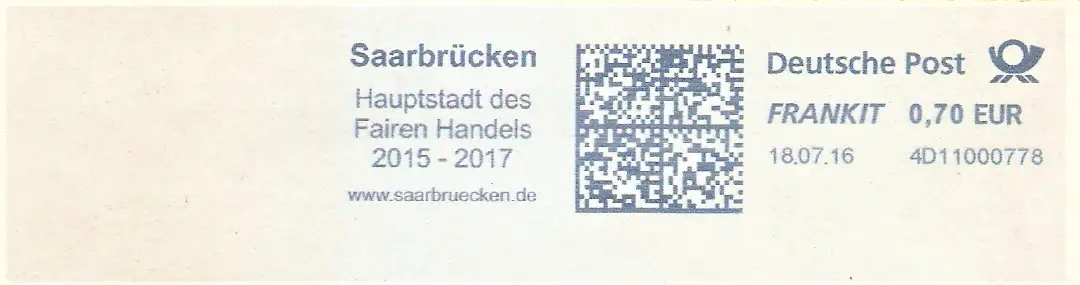 Freistempel 4D11000778 Saarbrücken - Hauptstadt des fairen Handels 2015 - 2017 www.saarbruecken.de (#2254)