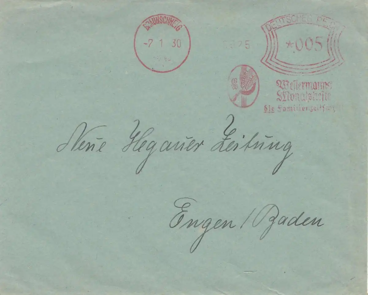 Freistempel Braunschweig: Westermanns Monatshefte bis Familienzeitschriften 1930