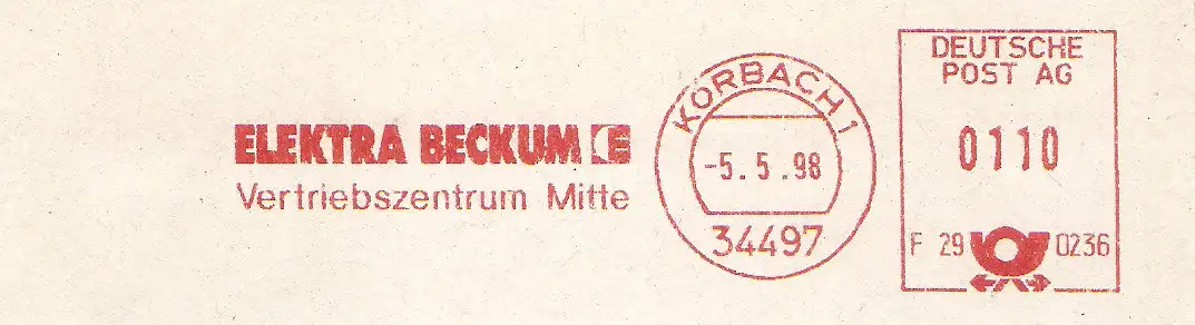 Freistempel F29 0236 Korbach - ELEKTRA BECKUM - Vertriebszentrum Mitte (#2737)