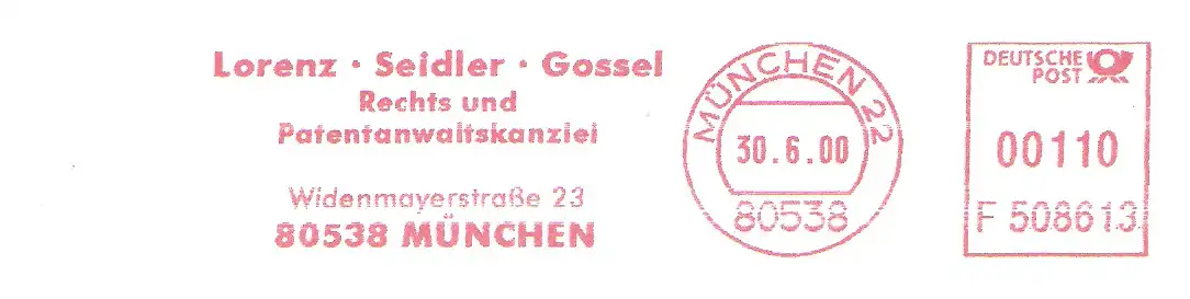 Freistempel F508613 München - Rechts und Patentanwaltskanzlei Lorenz Seidler Gossel (#331)