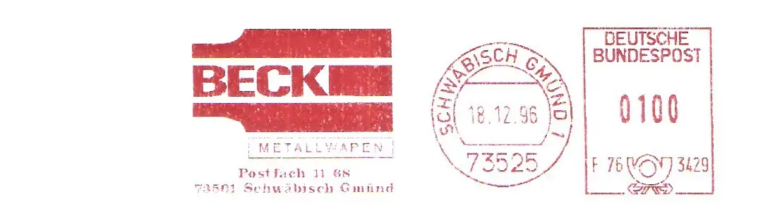 Freistempel F76 3429 Schwäbisch Gmünd - BECK Metallwaren (#2892)