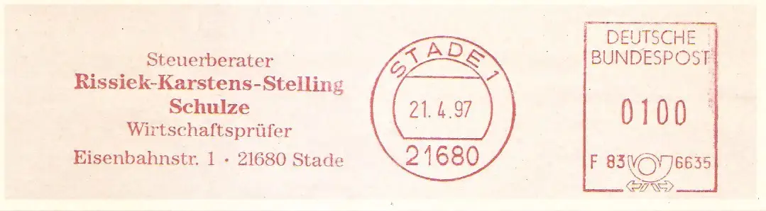 Freistempel F83 6635 Stade - Riessiek-Karstens-Stelling-Schulze / Steuerberater Wirtschaftsprüfer (#2246)