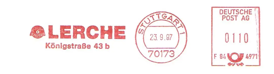 Freistempel F84 4971 Stuttgart - LERCHE (Abb. Schallplatte) (#3104)
