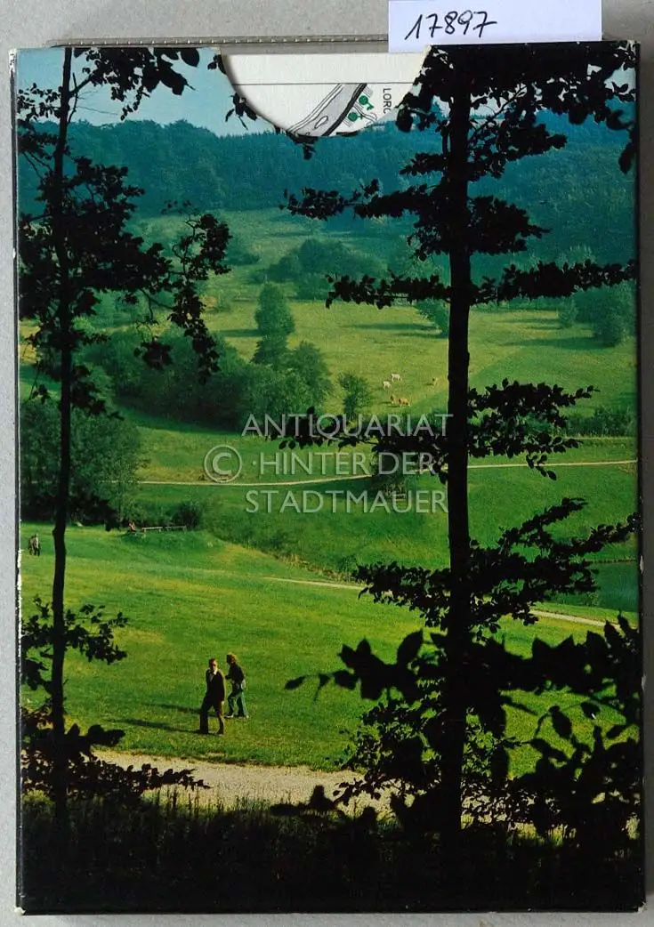 Schuber mit 50 illustrierten Wanderkarten im Postkartenformat und Informationen zu Sehenswürdigkeiten auf der Rückseite, eine Plastik-Schutzhülle für die aktuelle Route. (Wanderwege unterschiedlicher Länge, Karten ca. 1:75 000 - 1:200 000.) Schuberkanten leicht berieben, Karten vollständig und in sehr gutem Zustand