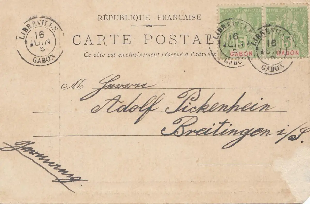 French colonies: Gabun Libreville 1905 post cardc to Breitingen