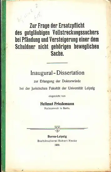 Friedemann, Hellmut: Zur Frage der Ersatzpflicht des gutgläubigen Vollstreckungssuchers bei Pfändung und Versteigerung einer dem Schuldner nicht gehörigen beweglichen Sache. Dissertation bei der Juristischen Fakultät der Universität Leipzig 1909.