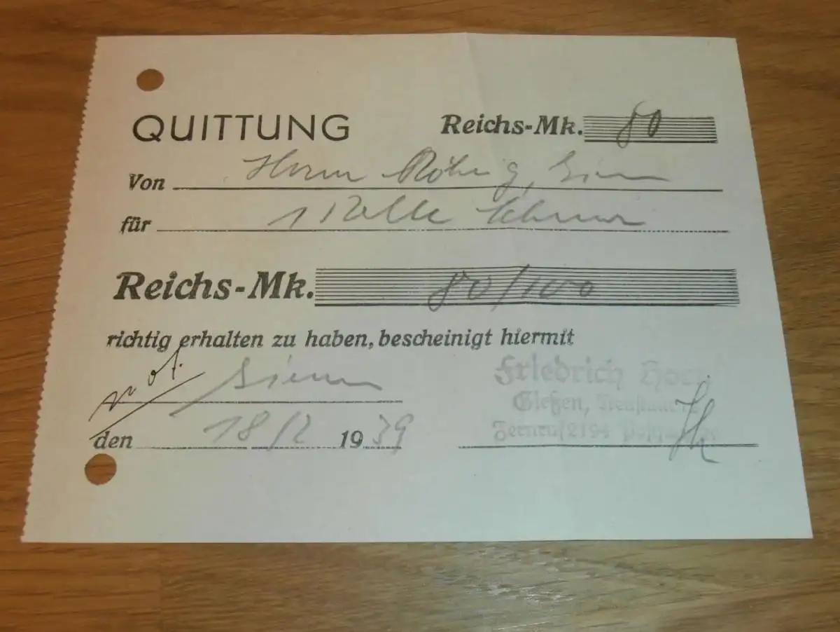 Friedrich Horn in Gießen , 1939 , altes Dokument / Rechnung , Reklame / Werbung , Giessen