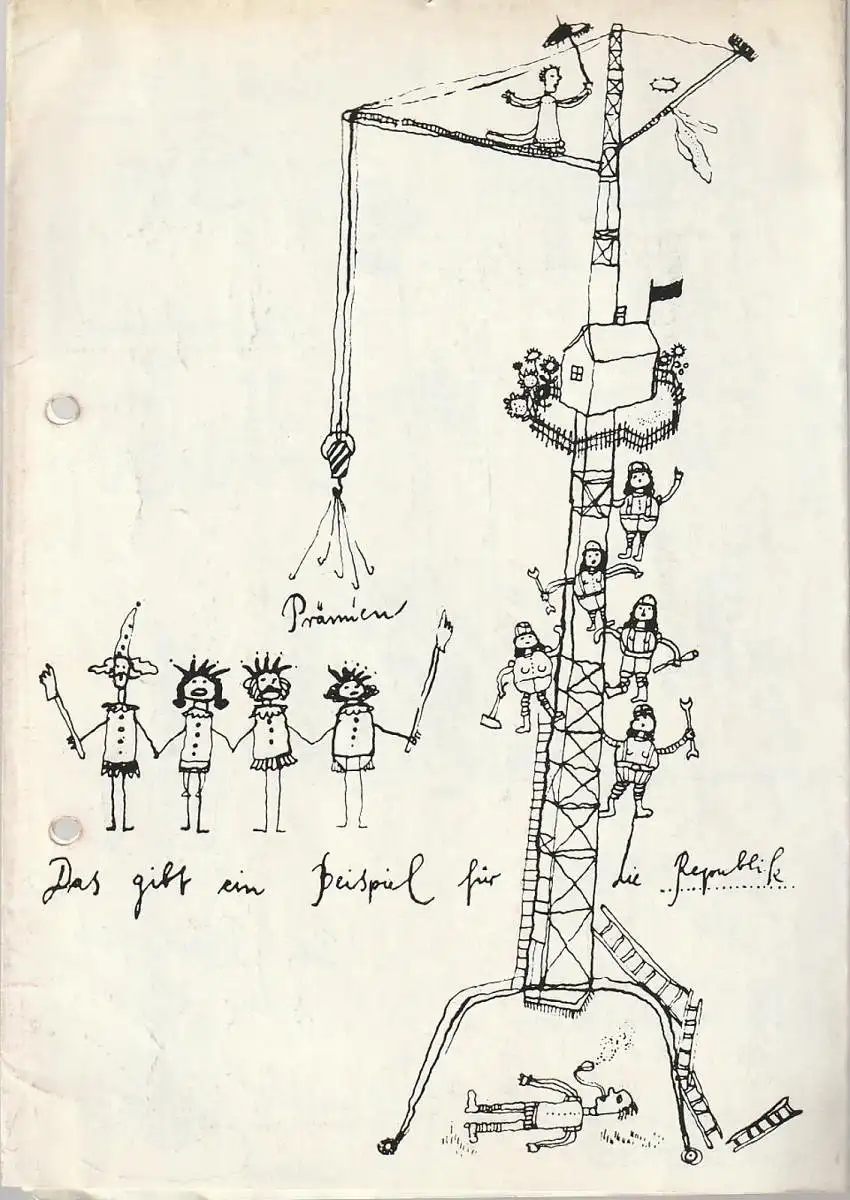 original mehrfach gefalteter Bogen, 8 Seiten, 5 Seiten mit Illustrationen von Gabriele Koerbl. Zustand: befriedigend, Ablagelochung