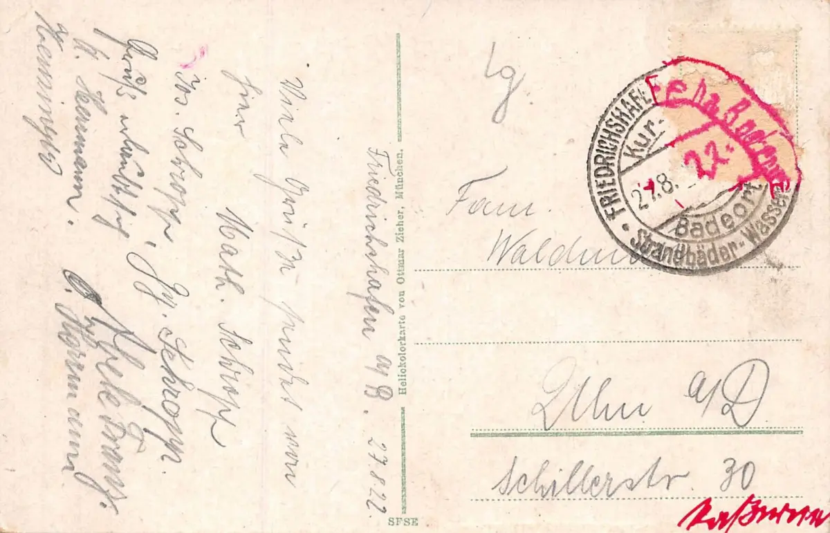 Rückseite: gelaufen 1922 von Friedrichshafen