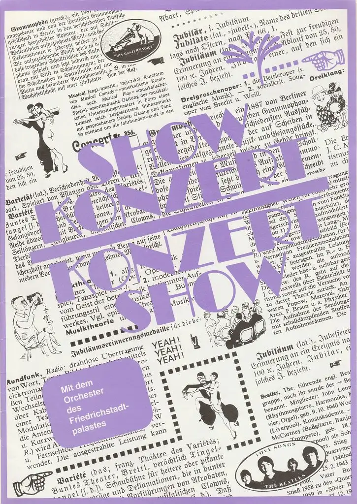 Musikalische Leitung: Dieter Himmer. Eröffnungsdialog: Peter Ensikat. Idee, Buch und Musikdramaturgie: Hans-Gerald Otto. Regie: Volkmar Neumann. Mitwirkende: Franziska Traegner, Stefan Lisewski, Cornelia Drese, Lena Valaitis, Lili Ivanova, Vocalis, Felix Slovacek, Hornquartett der Deutschen Staatsoper Berlin, u.a. - Theaterprogramm, Opernprogramm, Ballettprogramm, Musicalprogramm, Konzertprogramm, Theatermemorabilia, Programmhefte Sammlung, deutsche Theatergeschichte.