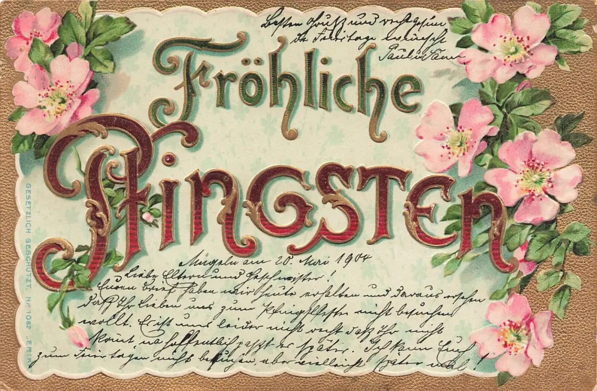 Fröhliche Pfingsten Blumen Rahmen Postkarte AK 1904