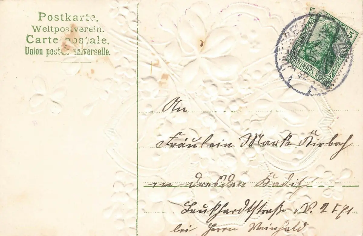 Fröhliche Pfingsten! Kleeblätter Blumen Postkarte AK 1907