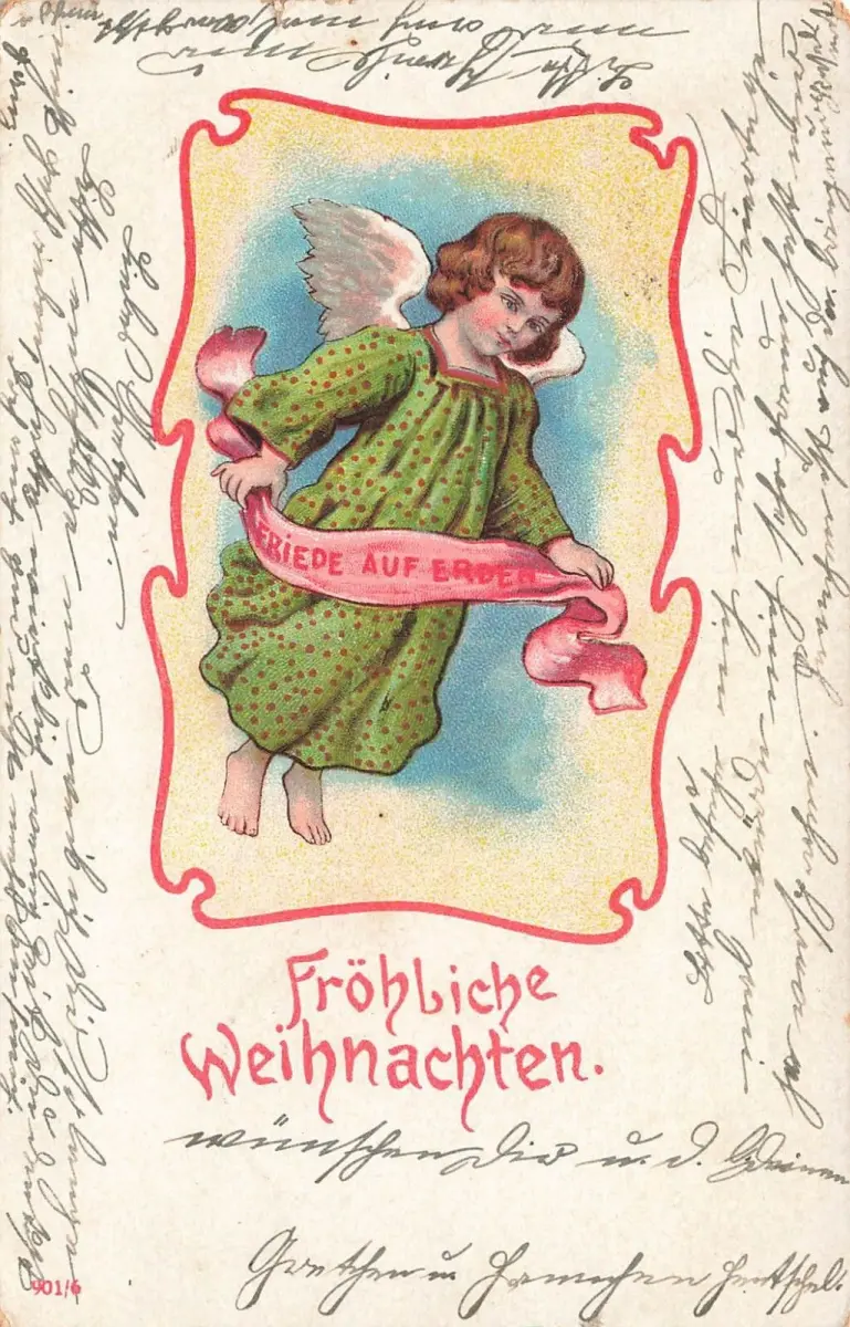 Fröhliche Weihnachten Engel Kind Friede auf Erden Postkarte AK 1905