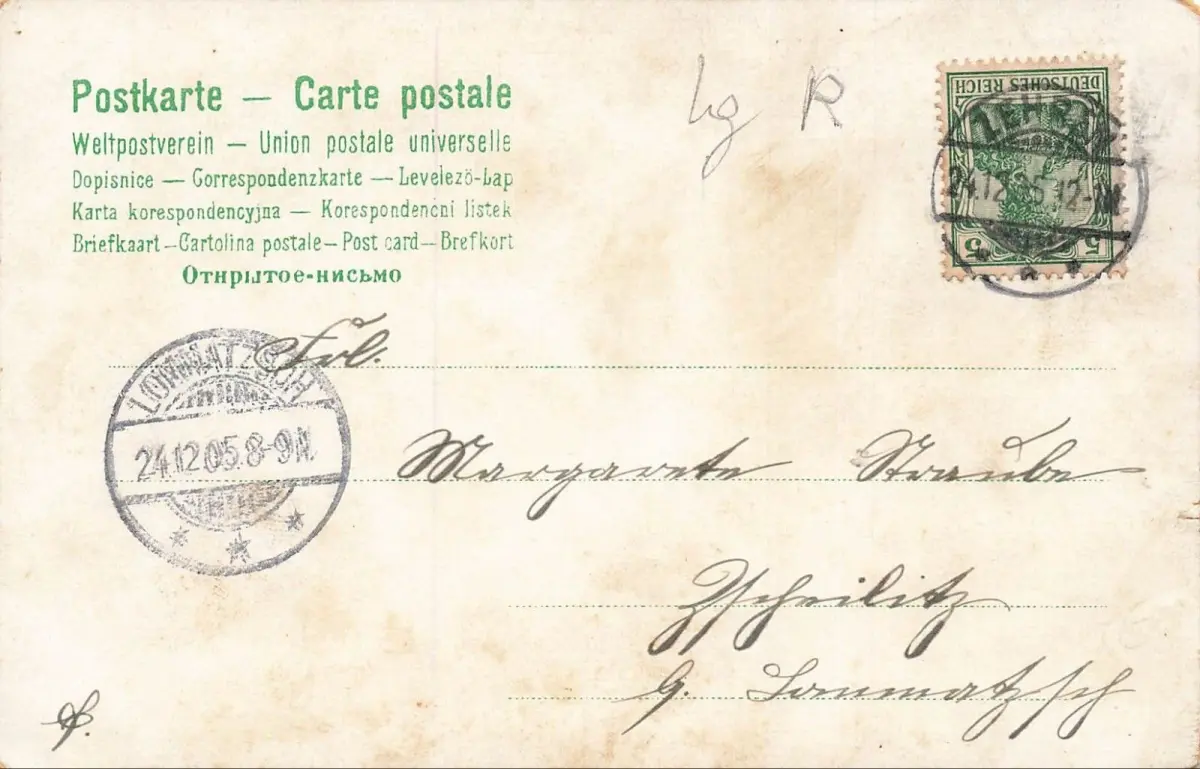 Rückseite: gelaufen 1905 nach Lömmatzsch