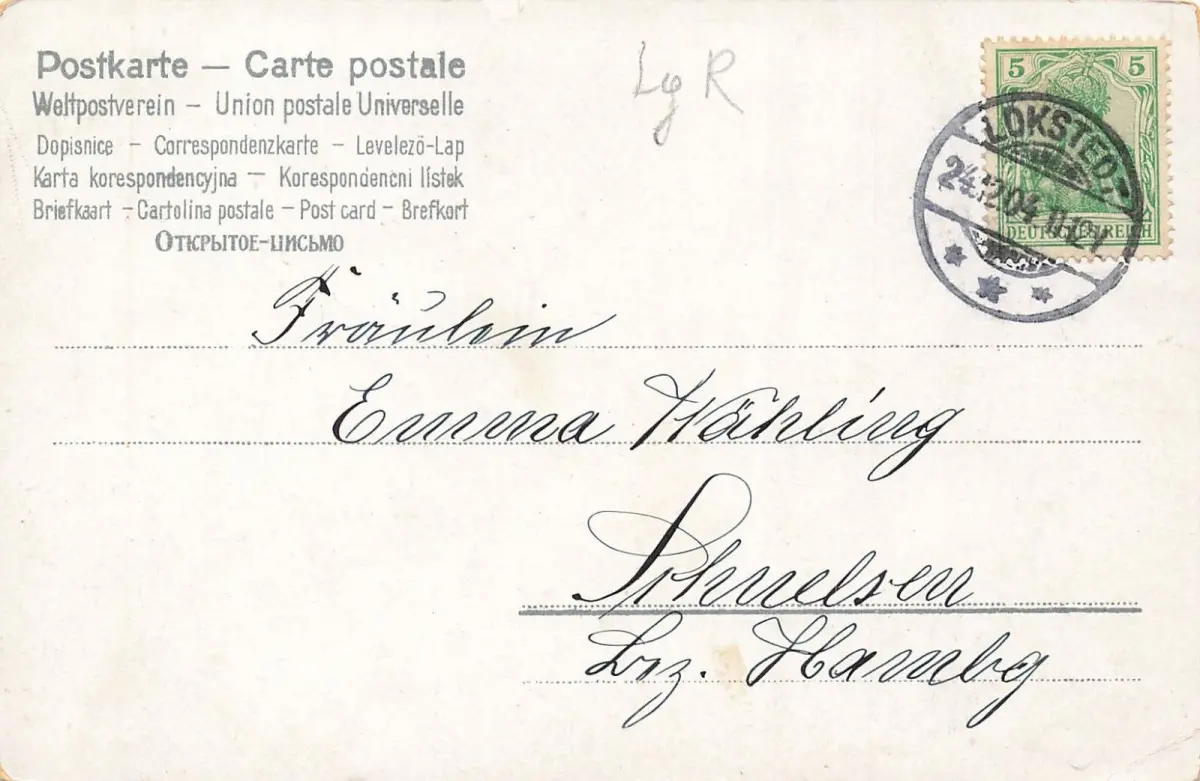 Rückseite: gelaufen 1904 von Lokstedt