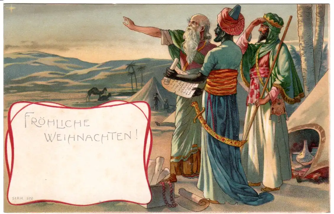 Fröhliche Weihnachten m. Hlg. Drei Könige in der Wüste, ungebr. Farb-AK