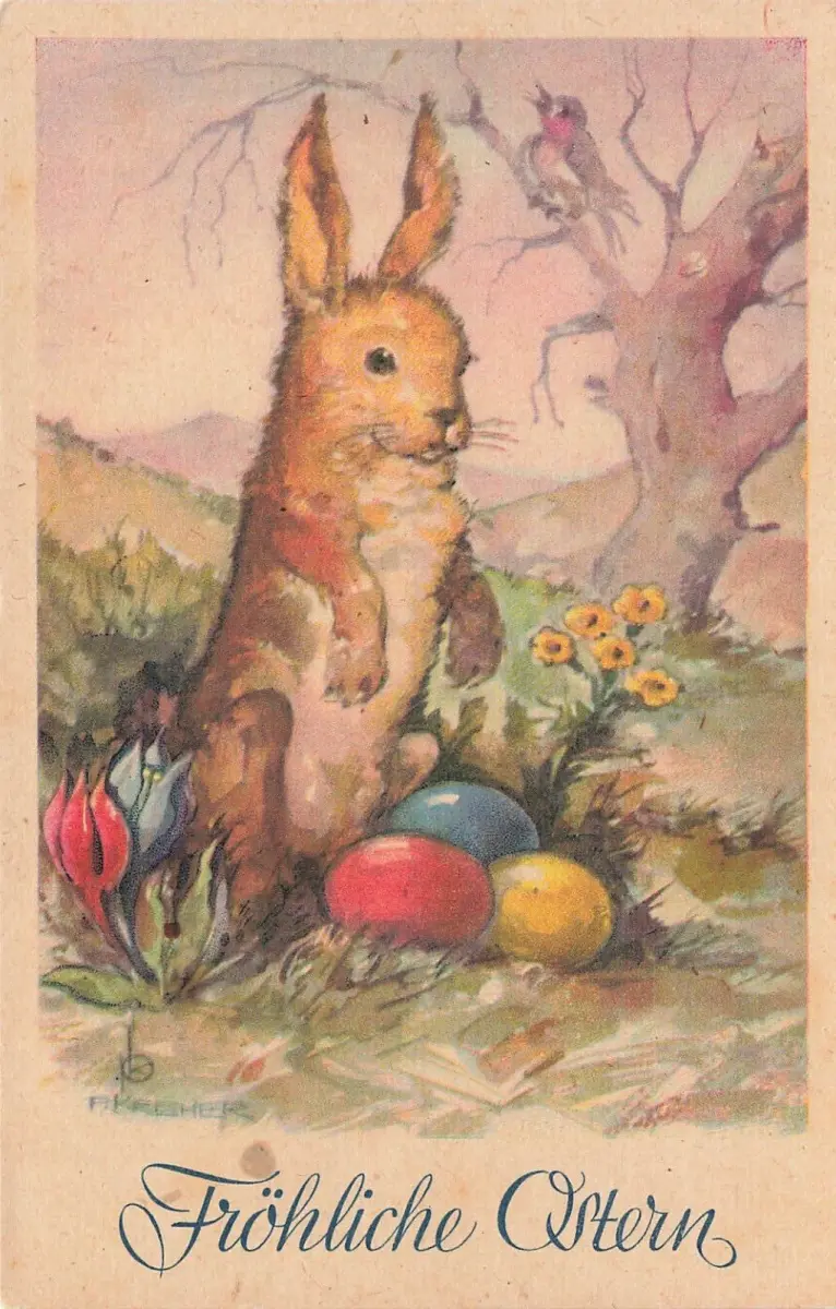 Fröhlihe Ostern Hase mit bunte Eier Postkarte