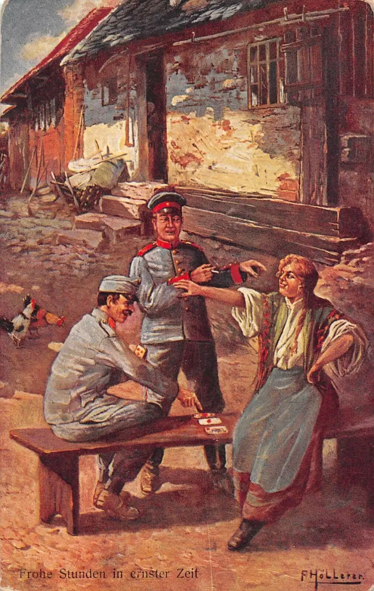 Frohe Stunden in ernster Zeit Patriotika Postkarte AK 1917