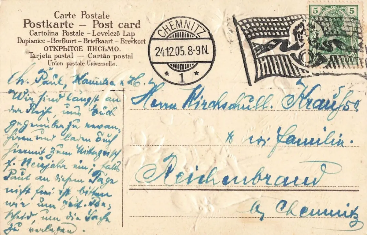 Frohes Weihnachtsfest Glockenturm AK geprägt Chemnitz 1905