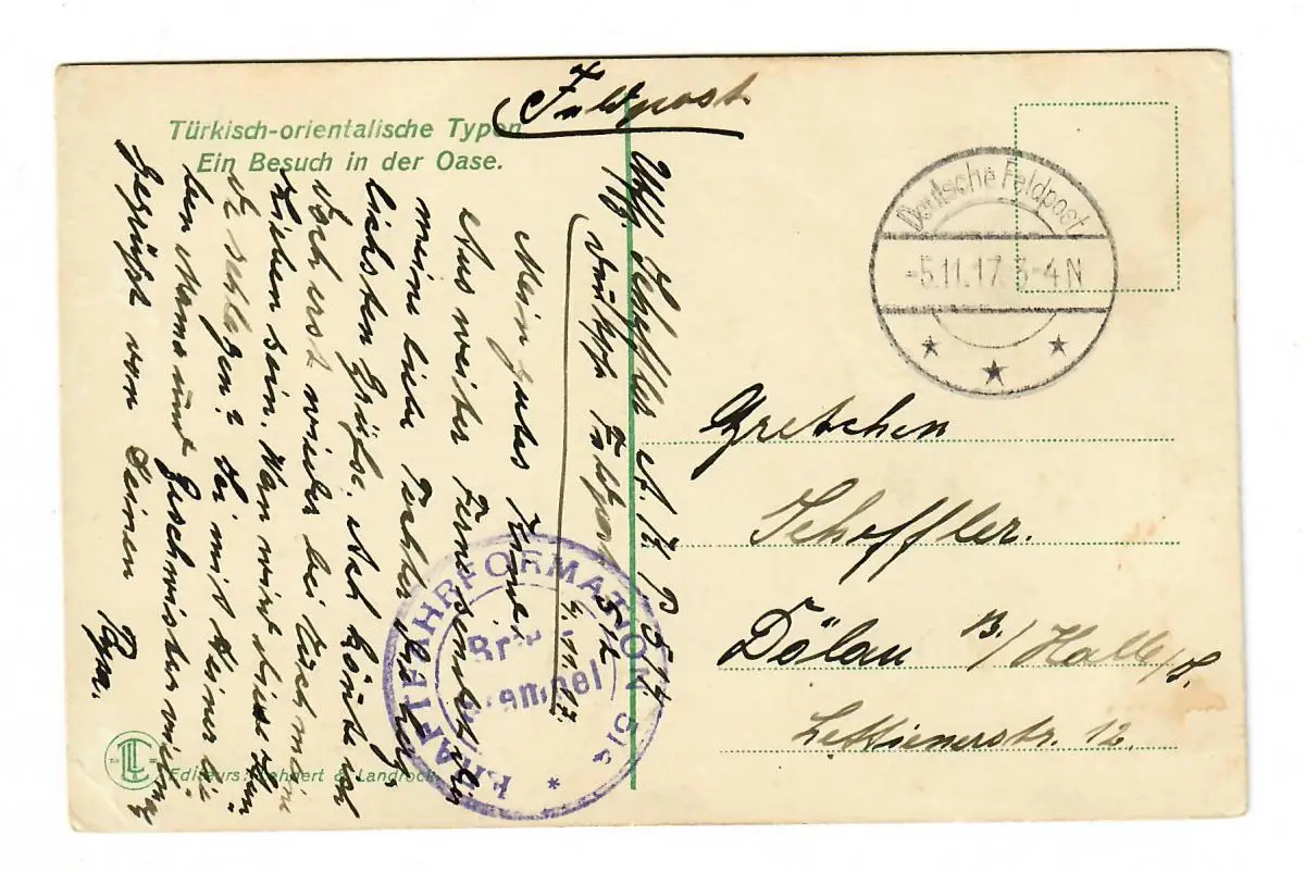 Frühe FP: 5.11.1917, AK Besuch in der Oase, Kraftfahrerformation nach Döhlau