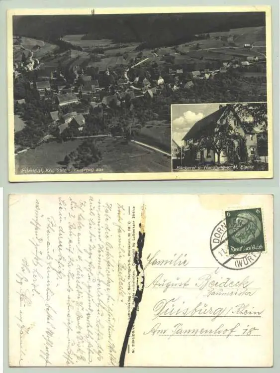 Fuernsal 1939 (intern : 0081130) Artikelbeschreibung u. Zustand : Siehe Scan. Weitere Infos : Ruecks. Kleberest von uraltem Gummiband o. ae. PLZ-Bereich pauschal 72175. Postalisch gelaufen 1939