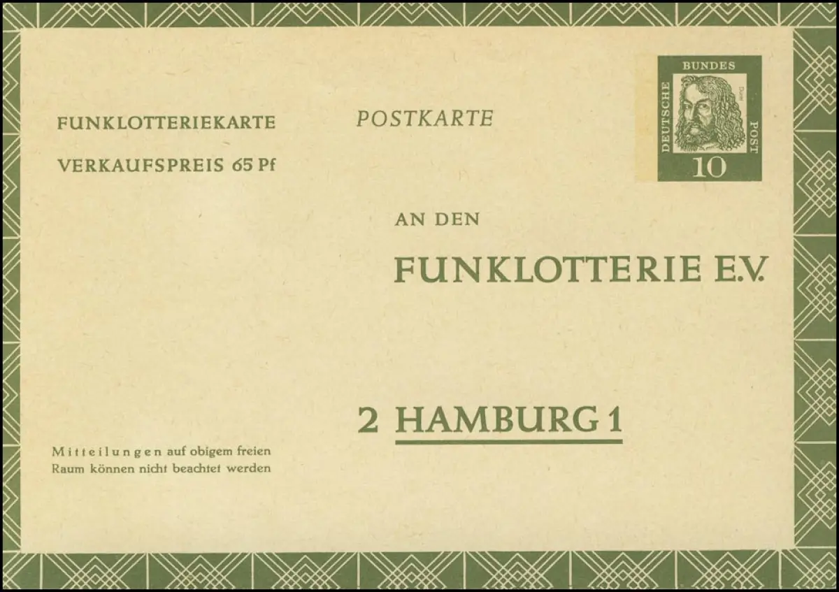 Funklotterie FP 9 Dürer 10 Pf mit Fluoreszenz-Beidruck / Postleitzahl 2, **