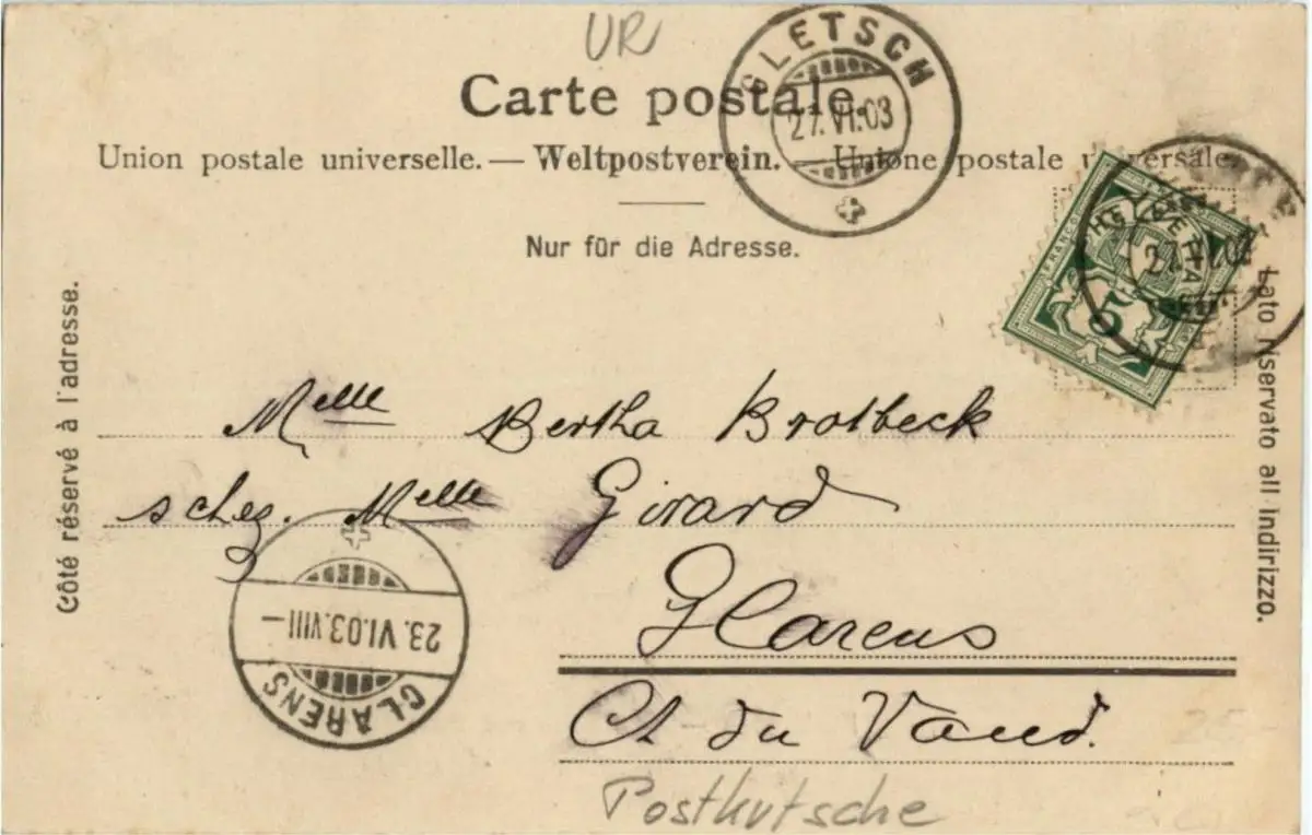 Danke. Alles Bestens. Können Sie mir allenfalls mitteilen, aus welchem Jahr die Postkarte stammt? Besten Dank.