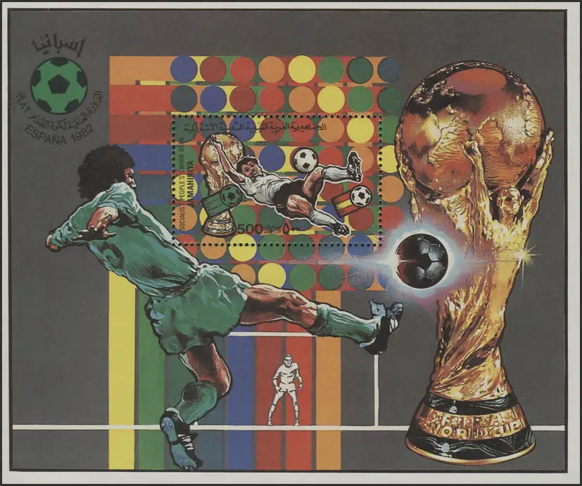 Fußball Libyen: SPANIEN'82 - Fallrückzieher, 1 Block mit rückseitigem Zudruck **